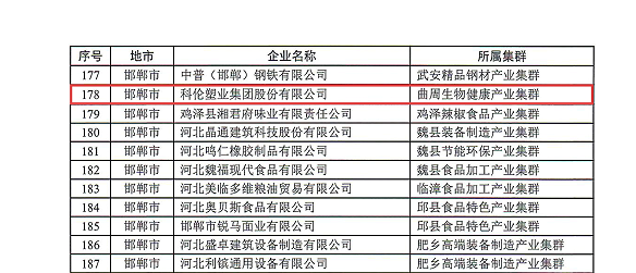 科倫塑業(yè)集團(tuán)股份有限公司獲評(píng)河北省特色產(chǎn)業(yè)集群“領(lǐng)跑者”企業(yè)